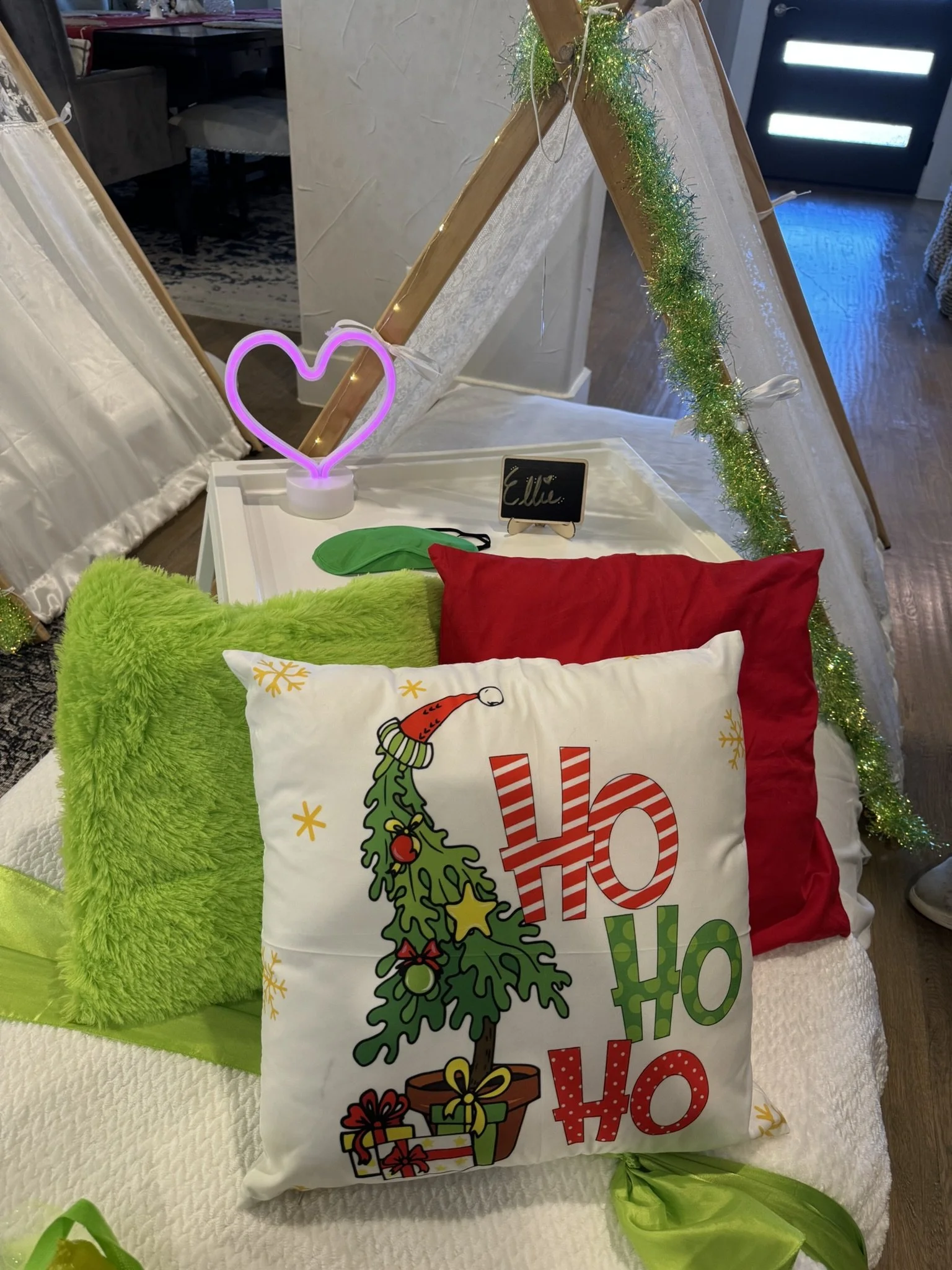Cozy holiday sleepover: twinkling lights, plush pillows and blankets, you can serve seasonal snacks like hot cocoa, gingerbread, and peppermint popcorn. Activity suggestions: cookie decorating, movie marathon, DIY ornaments or pajama-decor stations, or a gift-exchange game. Guests: wear holiday PJâs or ugly sweaters, bring a sleeping blanket and pillow, and enjoy low-key games, festive playlists, and photo moments. Perfect for friends or family seeking a warm, merry, relaxed evening. Also available: Elf-themed sleepover.